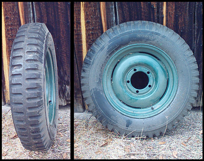 5 military tires 6.00 X 16" on/ 5 refurbished 5 on 5 1/2 16" lug rims.